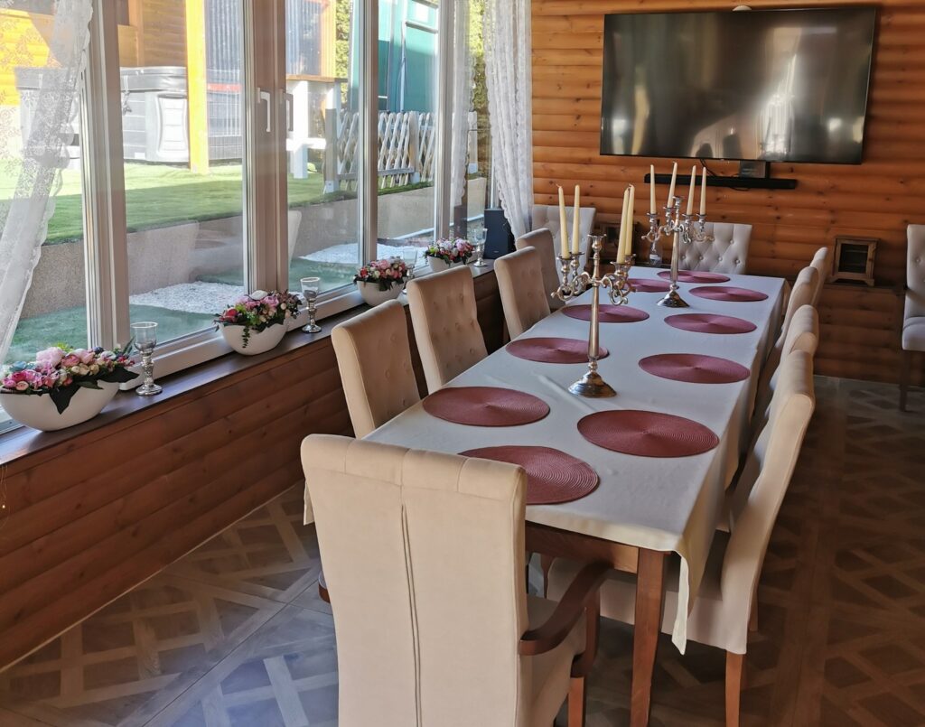 Minden étkezés helyszíne a gyönyörű téli kert ahol szépen terített asztal mellett kínáljuk a fenséges ételeket.